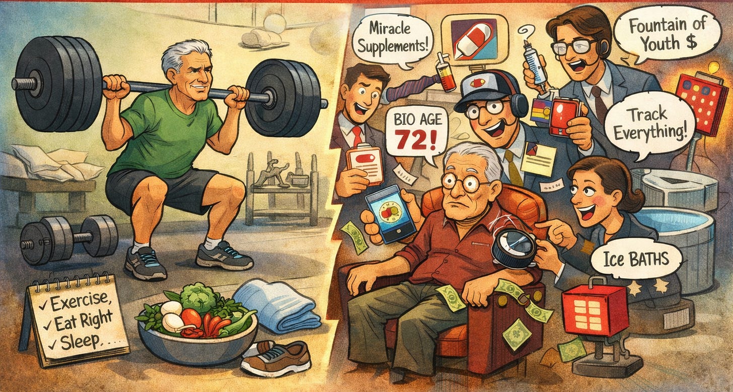 But the longevity industry as it exists today is mostly noise, fear-based marketing, and expensive distraction from the things that actually work.